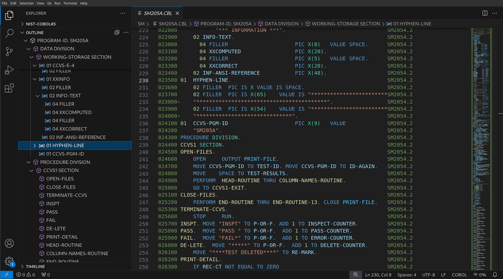 At the moment, definitions that belong to communication, report, or screen sections of the data division are ignored by the extension. In addition, some definitions in embedded SQL blocks (