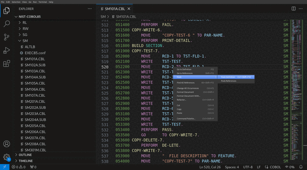 COPYTo ensure this works correctly, check your "superbol.cobol.copybooks" and "superbol.cobol.copyexts" settings.